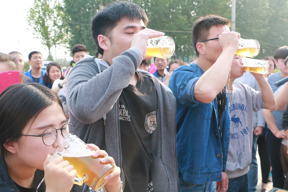 一氣呵成——一鼓作氣喝下去,都是好樣的!還有女生哦——膽量令人佩服!