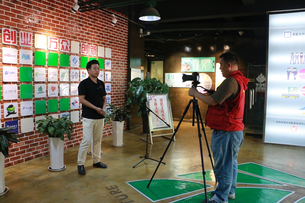 采訪(fǎng)人員首先在DCT創(chuàng)客空間一層創(chuàng)客書(shū)吧、項(xiàng)目路演大廳和人才交流展示區(qū)進(jìn)行了拍攝,還采訪(fǎng)了DCT創(chuàng)客空間工作人員周承樸,周承樸介紹了DCT創(chuàng)客空間的服務(wù)理念以及今后將更加積極探索優(yōu)秀的孵化模式,助力更多創(chuàng)客實(shí)現(xiàn)夢(mèng)想。