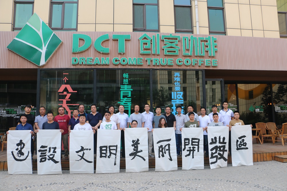 隨后是書法家們的主場,一行人在DCT創(chuàng)客空間開展了“邯鄲市迎接十九大書法作品評(píng)審”,并用通俗易懂的語言向我們傳授基本的書法知識(shí),使我們都能領(lǐng)略國粹的魅力。后,書法家們即興潑墨,題寫“建設(shè)文明美麗開發(fā)區(qū)”,,助力我區(qū)創(chuàng)城工作。