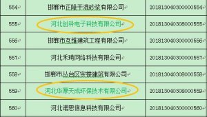 近日,邯鄲市科學技術局公布了2018年批納入國家科技型中小企業(yè)信息庫企業(yè)名單,園區(qū)企業(yè)河北創(chuàng)科電子科技有限公司、河北華厚天成環(huán)保技術有限公司、河北唯沃環(huán)境工程科技有限公司