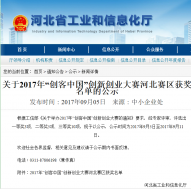 園區(qū)企業(yè)河北唯沃榮獲2017“創(chuàng)客中國”創(chuàng)新創(chuàng)業(yè)大賽河北賽區(qū)三等獎